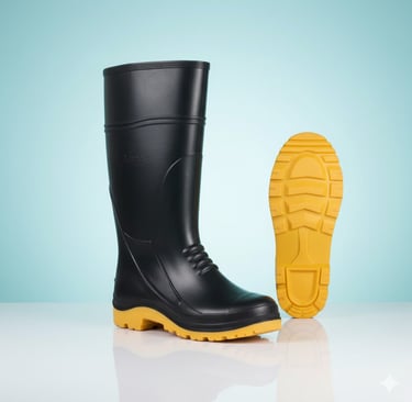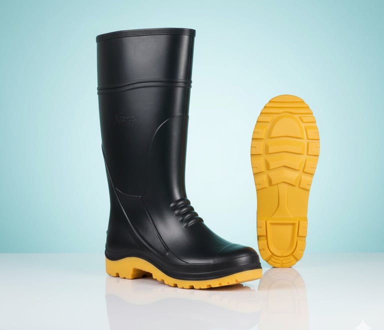 BOTAS DE PVC INDUSTRIAL NEGRA CON SUELA AMARILLA